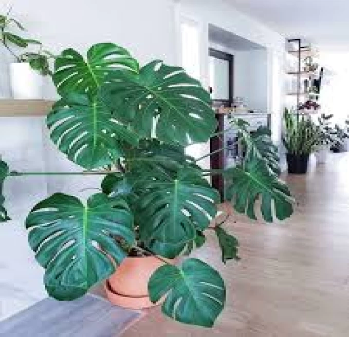 Monstera Deliciosa is a bold tropical indoor plant known for its large, glossy, split leaves. It thrives in bright indirect light, improves air quality, and adds a stylish, jungle-like vibe to homes and offices.
