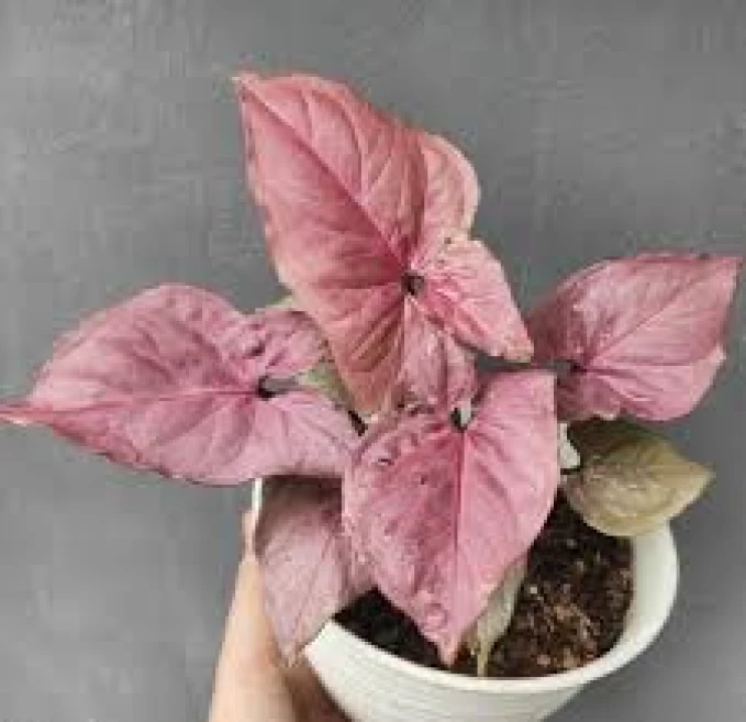 Syngonium Pink is a charming indoor plant with soft pink, arrow-shaped leaves. Easy to care for and fast-growing, it thrives in bright indirect light and adds a fresh, elegant pop of color to any space.